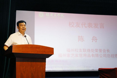 福州校友联络处荣誉会长、福州家艺家居用品有限公司总经理陈舟校友发言