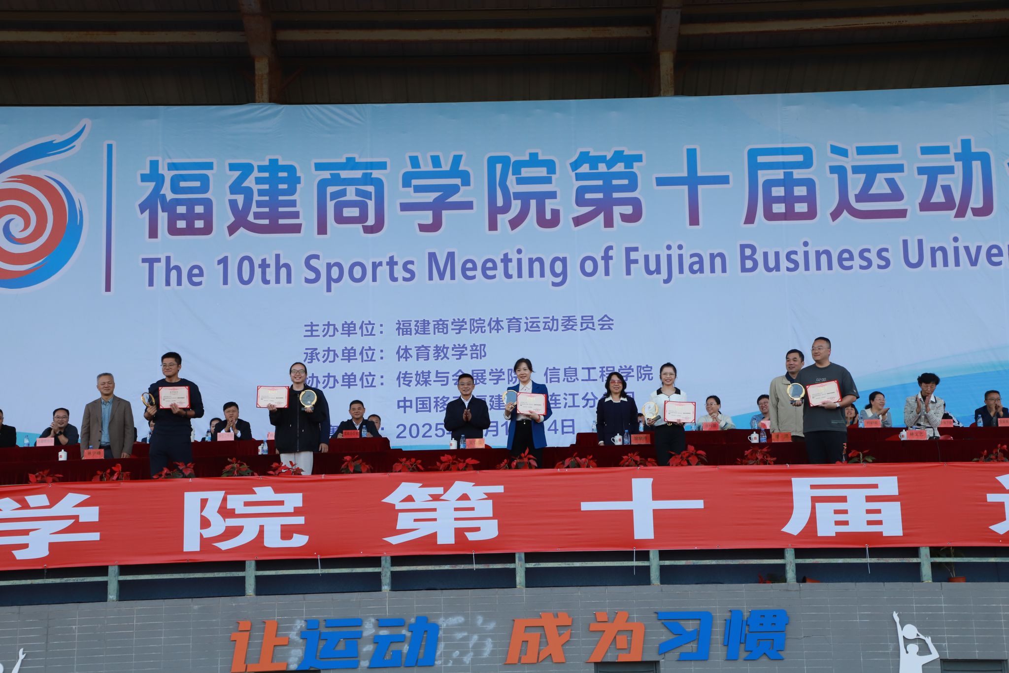 11月13日至14日,我校第十届运动会在连江校区举行。校领导、各二级学院及机关处室负责人等出席开幕式。校党委书记吴访益宣布运动会开幕,校党委副书记徐晓丹致开幕词。